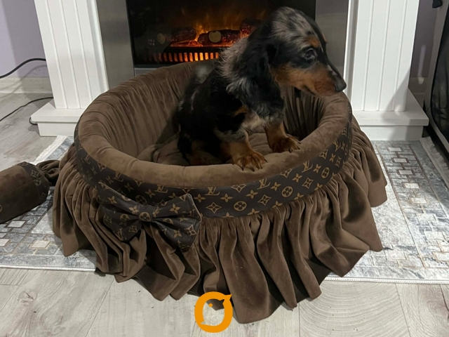 Patuljasti dugodlaki jazavičar, merle ženka stara 9 nedelja, tri puta očišćena od parazita, primila dve vakcine, izuzetnog temperamenta. Uz štene ide čip, pasoš, klinički pregled kod veterinara, početni paket granula, pedigre.